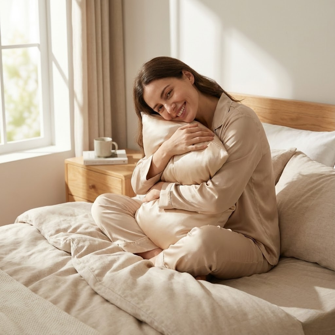 סיב המשי אינו סופח נוזלים. הלחות הטבעית של העור והסרומים היקרים שלך נשארים על הפנים – ולא נספגים לתוך הכרית. את קמה עם עור רווי וזוהר יותר.